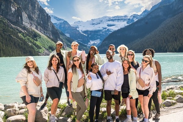 We began our third and final day at Lake Louise with a guided sunrise Polar Plunge into the lake. Our breathing expert and guide explained how she uses our Squalane + Copper Peptide Rapid Plumping Serum and Squalane + Vitamin C Rose Oil after a cold plunge to help boost circulation while tightening and hydrating her skin.